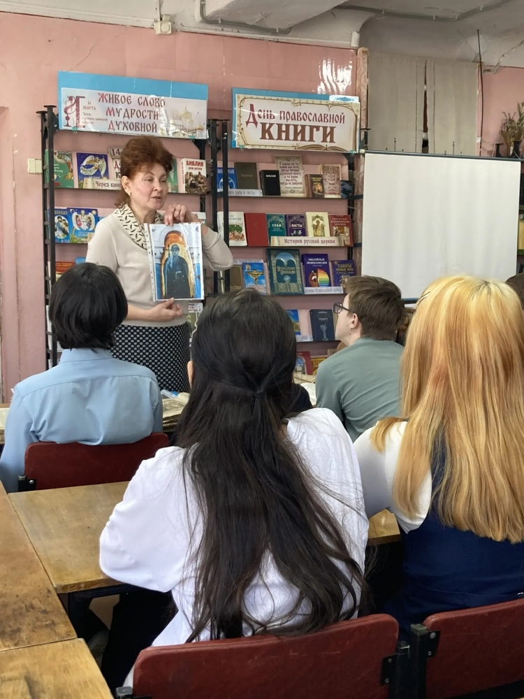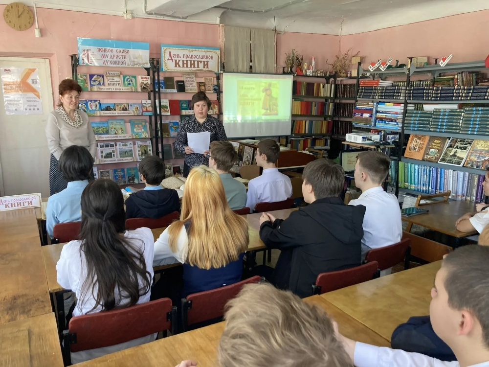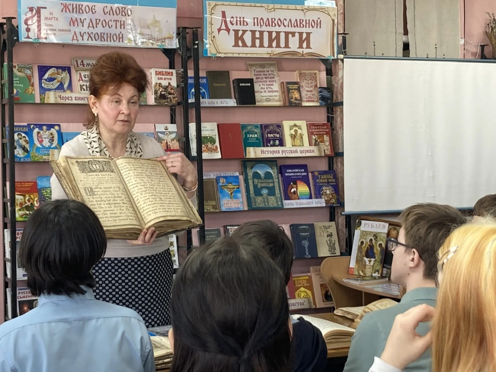 13 марта 2026 года в библиотеке имени М. Горького города Азова состоялась встреча со старшеклассниками МБОУ СОШ N5, приурочнная ко Дню празднования православной книги. Преподаватель Воскресной школы Никольского храма Корниенко Людмила и заведующая библиотекой Лобань Елена провели беседу на тему: "Православная книга. История книгопечатания". Ребята имели возможность познакомиться с старинными богослужебными книгами 19 века. В завершении беседы учащиеся отвечали на вопросы.